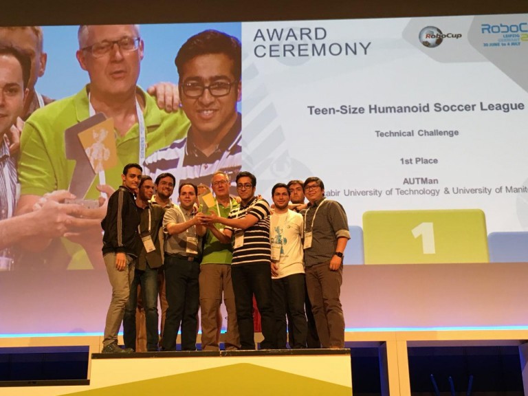 Congratulations to Team AUTMan for his quite successful participation in RoboCup 2016, Leipzig, Germany. We won the Humanoid TeenSize Robot League 1st Place of Technical Challenge and 3rd Place of the league.